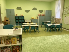Školka je nyní zaplněna jemnými přírodními tóny, které vytvářejí klidné a přívětivé prostředí. Tyto barvy nejenže působí uklidňujícím dojmem, ale také podporují koncentraci a kreativitu dětí. Moderní nábytek dodává prostoru svěží a současný vzhled.